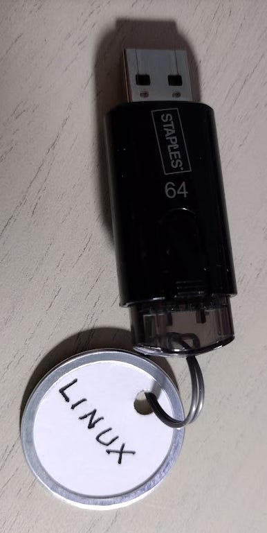 Having ready access to a live Linux OS can be handy when the OD installed on the computer acts up or fails in some way. Booting into an alternate OS may provide emergency access to disks, and give insights into what may have failed. So, I've decided to dedicate a 64 GB flash drive to Ventoy.
